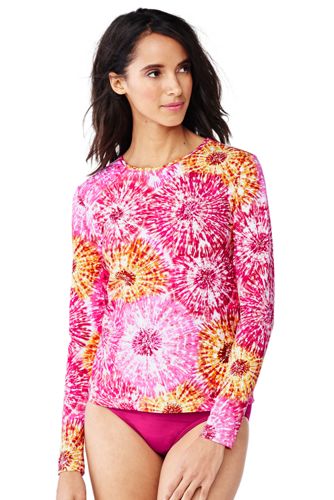 I purchased this top last summer from Lands End. They claim spf 50 sun protection in and out of the water. I fist purchased this one in my normal street clothing size (and in blue, which they don't seem to have anymore).